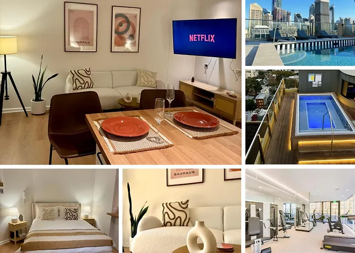 Tijdens hun verblijf in Stylish Studio With Amazing Pool Sydney van 40 m², kunnen gasten het Capitol Theater bezoeken, gelegen op op wandelafstand van circa 5 minuten. De beschikbaarheid van een bubbelbad en een sauna zorgt voor een nog aangenamere ervaring.